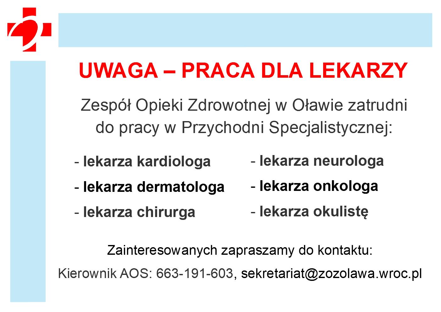 Miejsce pracy: Hospicjum Stacjonarne przy Zespole Opieki Zdrowotnej w Oławie